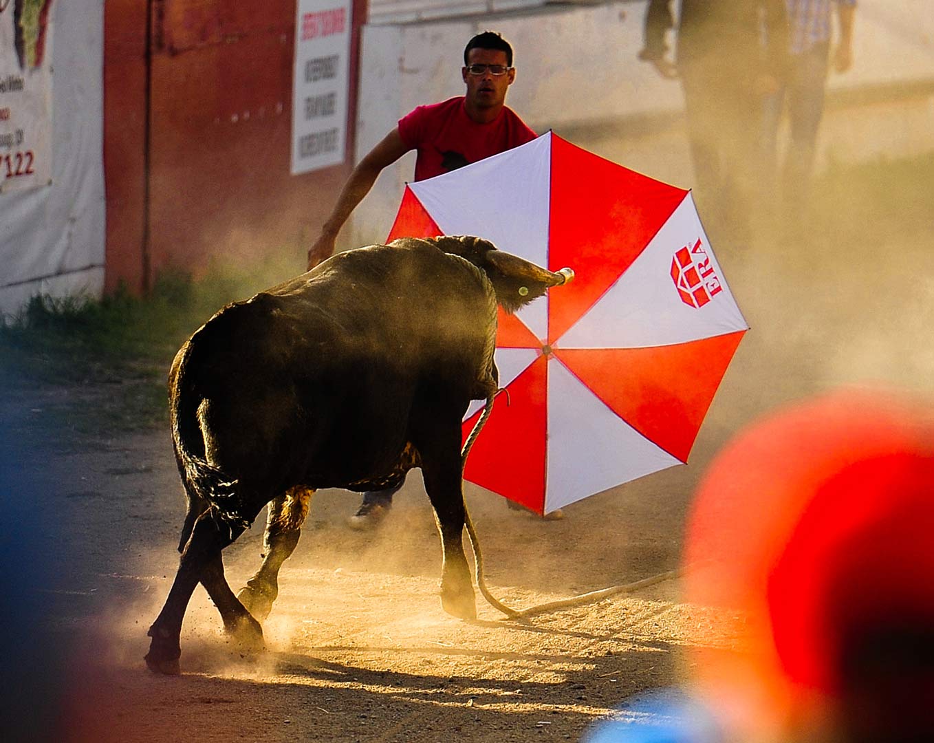 It’s a day of festivities for Portuguese Canadians who hold a traditional bull-running event in Arthur, Ontario. The real bull runs that are held in some towns in Europe, where the bull is let go free on the city street, are not allowed in Canada. The participants at the event in Arthur do not harm the bull, or vice-versa, but they pretend its all real while having fun.
